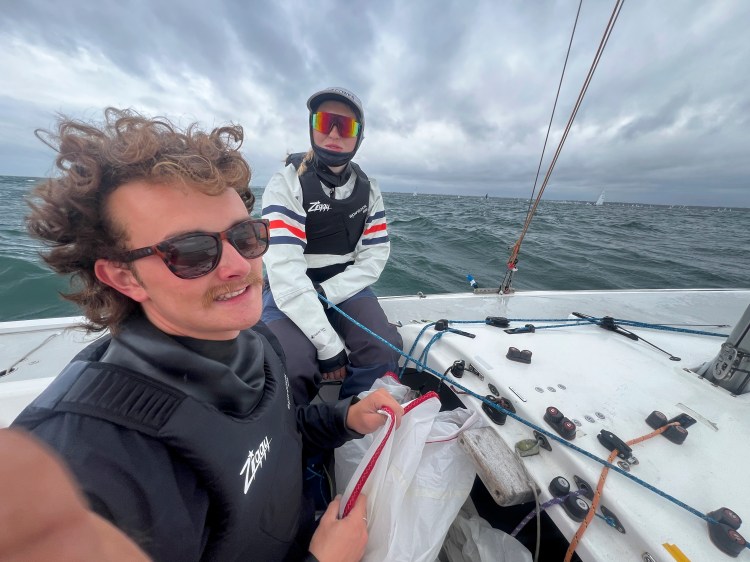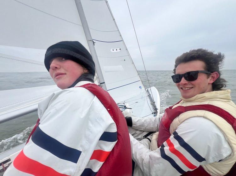 Dylan and Biba got a taste of what the Etchells is capable of, and not even the grey skies or brisk easterly wind could wipe the smiles from their faces.