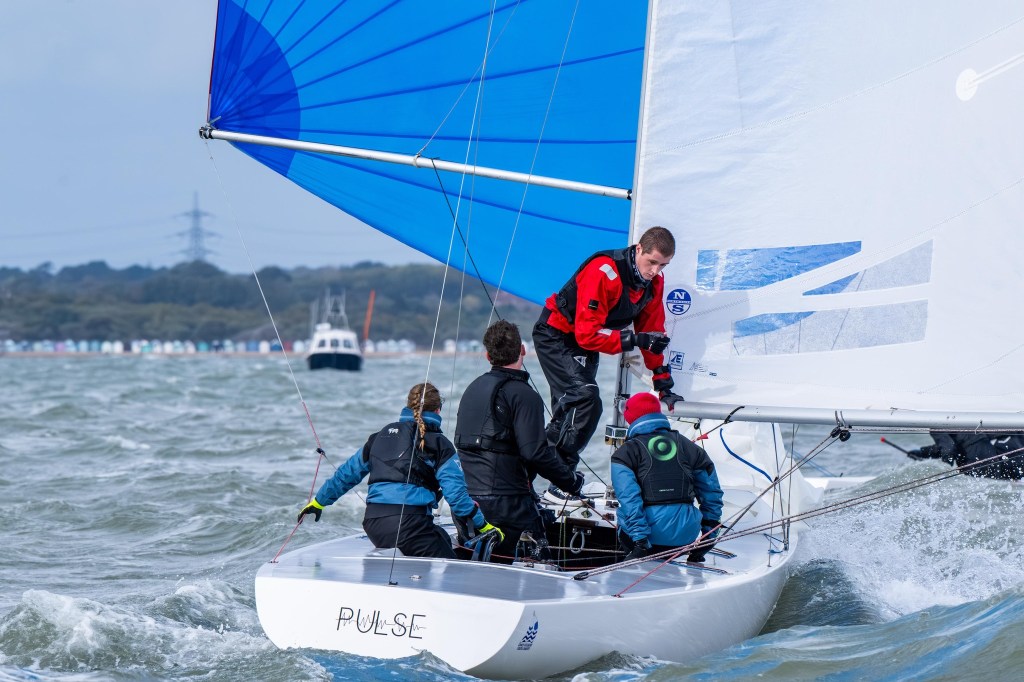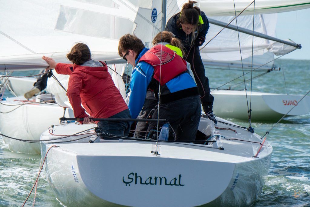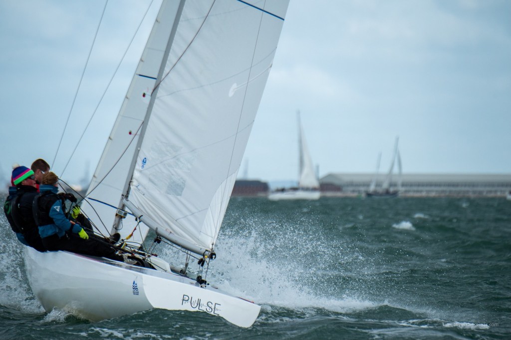 Unfortunately, Saturday was blown out by Storm Amy, but six boats were still keen to fight it out on Sunday, including Heather Quinn and her team on Pulse. On a breezy Sunday, six boats lined up. A close set of races saw Heather and Pulse finish in sixth but first Corinthian and first Youth. A very competitive fleet saw several Olympians join the fleet, including Shirley Robertson, Hannah Snellgrove, and Sarah Ayton.